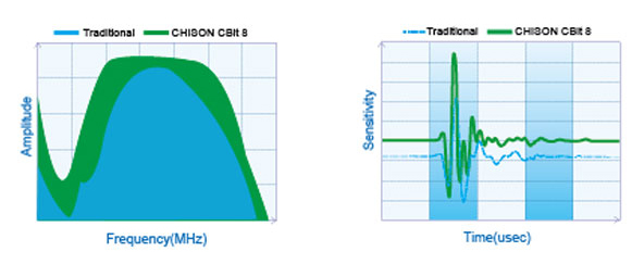CHISON CBit8 utiliza el último avance en tecnología de transductores, que tiene un ancho de banda más amplio, una sensibilidad más alta y una mejor relación señal-ruido, brindando a los usuarios excelentes detalles anatómicos y una excelente resolución y penetración, especialmente durante el escaneo de pacientes difíciles.